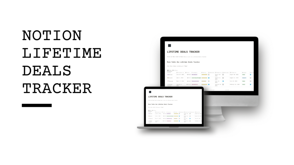 A Notion Template to track all your Lifetime Deals Tools & Softwares with many different views. All future updates included